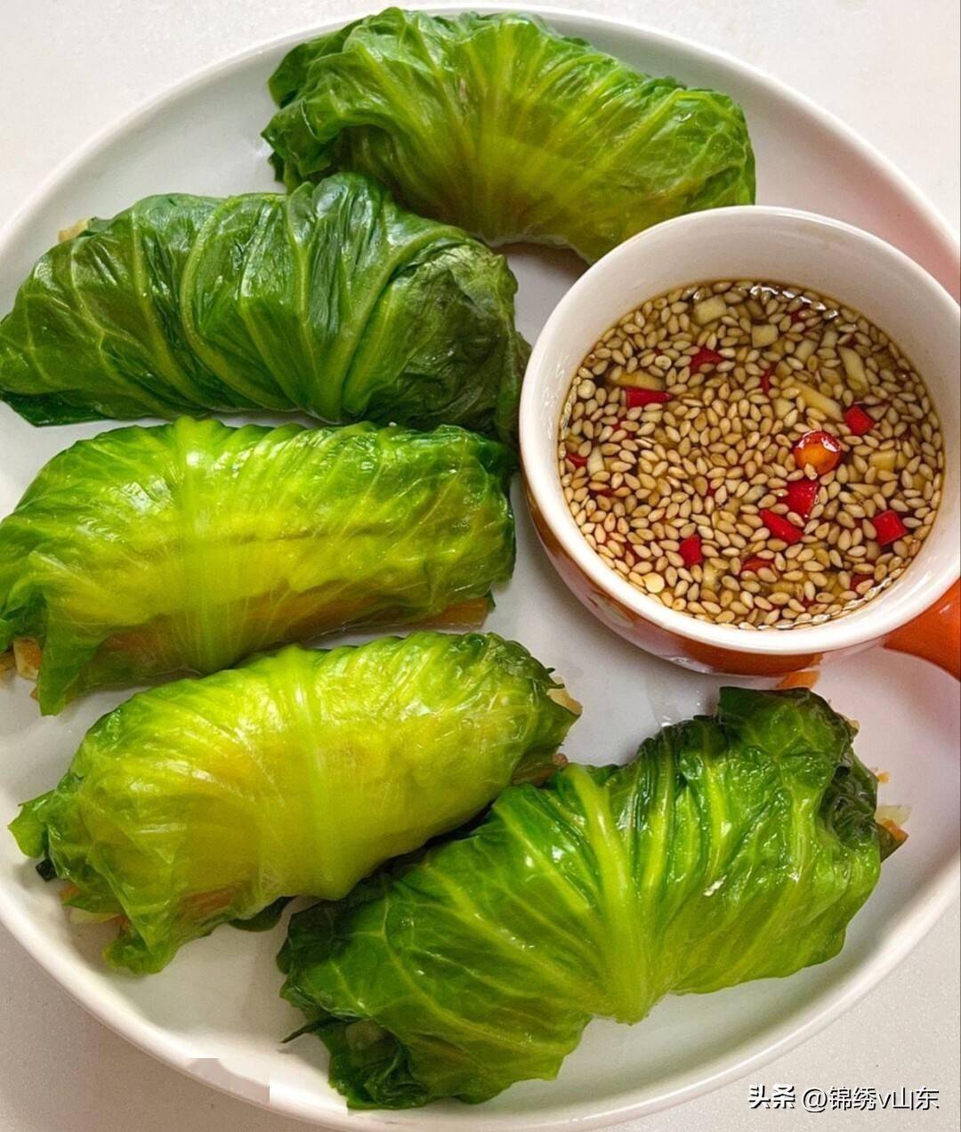 4. 热锅凉油,淋入蚝油和30毫升清水,加剩余食盐煮开,将汤汁浇在生菜卷上,即可上桌。