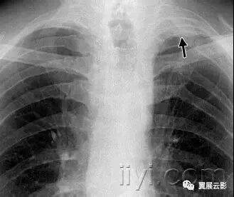 平片和CT:常见表现是均匀的软组织密度,位于单侧或者双侧肺尖之上呈帽状,下界尖锐且不规则。厚度可变,甚至可达30mm。有时候在横断CT上,肺尖帽可以类似肺尖的实变。