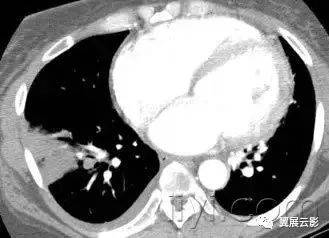 平片和CT:典型的肺梗死为三角形,或者圆顶状,基底部位于胸膜,尖端致祥肺门。密度增高代表局部出血,其中心组织可以坏死,也可以不坏死。