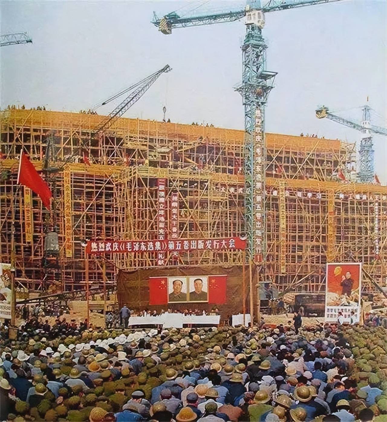 选址并非易事,考虑到广场周围的古建筑群,新建一座纪念堂不仅要与周围环境和谐统一,还不能压制人民英雄纪念碑的气势。方案确定之后,中央政府明确规定,纪念堂必须在毛主席逝世一周年前完成建设。全国上下为这一伟大项目纷纷贡献自己的力量,数十个省市捐赠了各具特色的物资,数百万市民也自愿到工地参与建设。可以说,毛主席纪念堂的建成,凝聚了整个民族的力量。这是一次不容失败的工程,因为在某种意义上,这座建筑违背了毛主席生前的意愿,但毛主席深得民心,广大人民宁愿将这份心意寄托在一座崇高的纪念堂中。