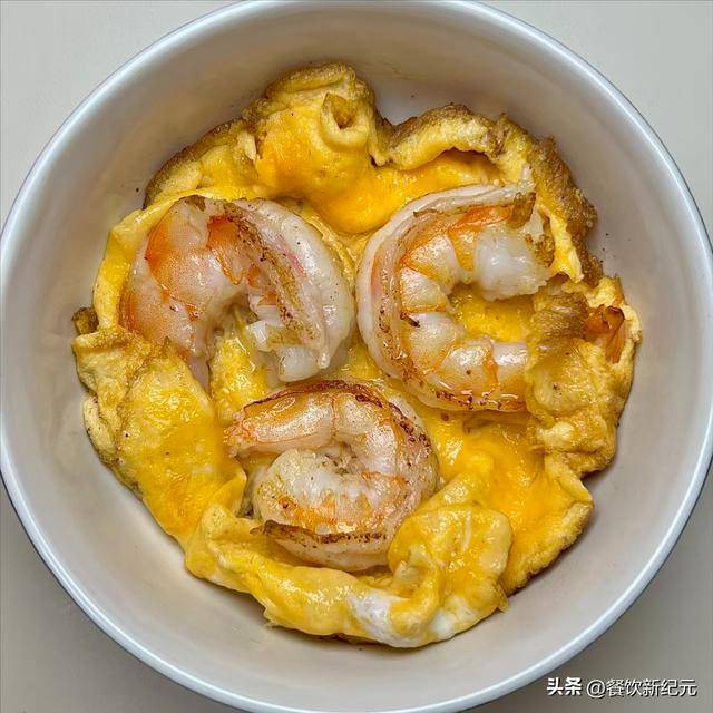 第二个菜是虾仁滑蛋,这个菜也是非常的精美,鸡蛋和虾仁,这两个食材,一直都是减脂餐里的“黄金搭档”。