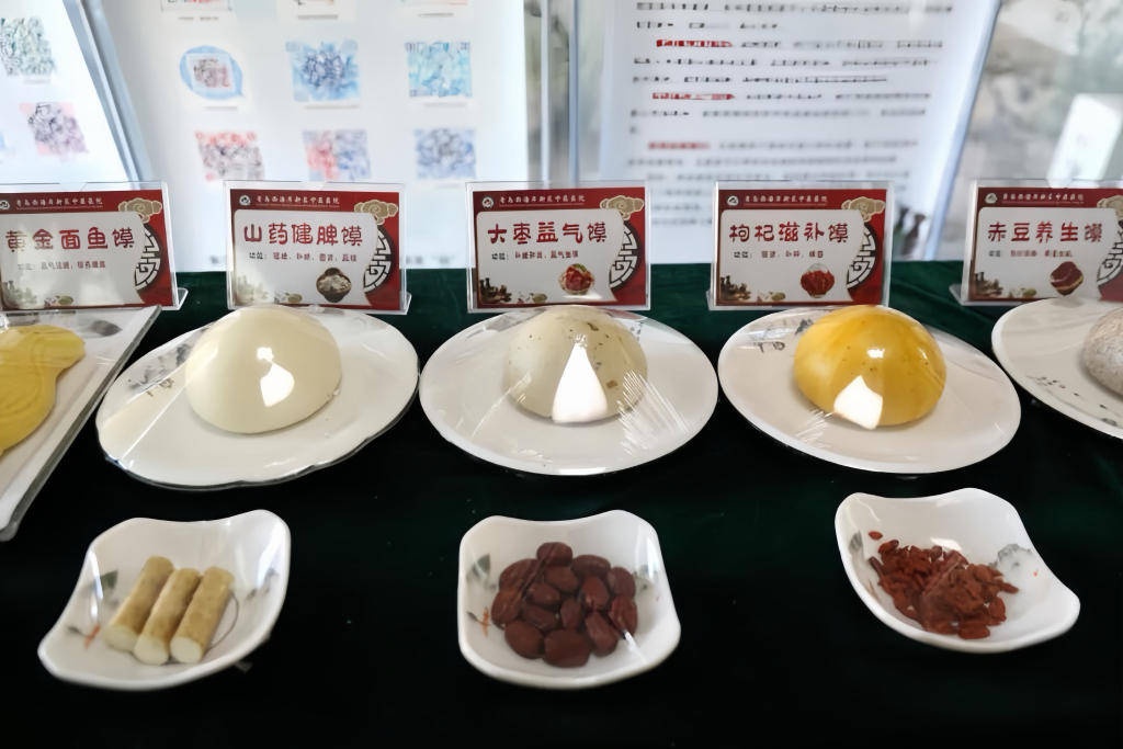 “中药+主食”:青岛西海岸新区中医医院将山药、薏苡仁、枸杞、茯苓、陈皮等食材融入主食制作,推出山药健脾馍、薏苡仁黄金馍等10款药膳馒头,以及补气、养血等多款药膳比萨,让养生更日常。此前,上海市中医医院、成都中医药大学、山东中医药大学等均推出了中药月饼,备受关注。