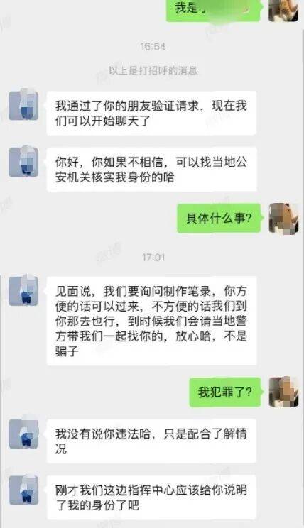 “他说反正到时候来了就知道了。”小王回忆,尽管在电话和微信聊天中,自己多次询问该民警警号和核实具体事宜,但该民警始终不透露任何信息,只是要求其去一趟四川简阳,或者其来深圳,小王顿时想起海底捞于四川简阳起家,她不禁产生联想,拒绝前往简阳,双方未再联系过。