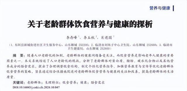 [1]李存峰.关于老龄群体饮食营养与健康的探析,食品安全导刊,2024-04-05