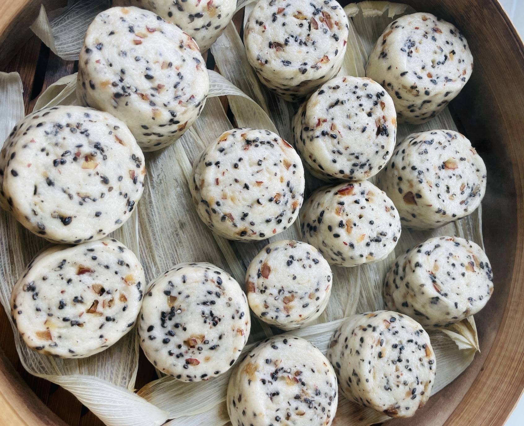 5、将其一一摆入蒸锅,先等待半小时左右,此时其看起来体积明显变大了。开始加热,十五分钟后就熟了。