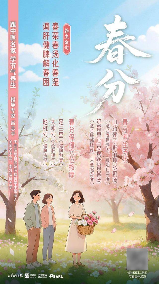 “日月阳阴两均天,玄鸟不辞桃花寒。”春分日,昼夜均而寒暑平。这一天各地除了有“竖蛋”这样暗合平衡阴阳的民俗外,广府地区也有各种吃春菜、踏春行之习俗。各种春分养生药膳食谱中,有何广东人祛湿除春困的岭南智慧?哪些做得对,哪些是误区?“春菜春汤化春湿,调肝健脾解春困。”全国名中医、南方医科大学中西医结合医院肝病科学术带头人吕志平教授给出两句养生金句,从饮食智慧,解码岭南春分习俗的平衡养生之道。