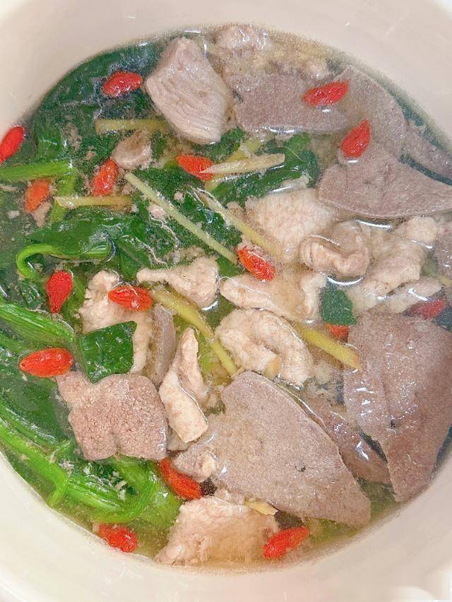小贴士:这道汤讲究快,猪肝和枸杞叶都不宜久煮,否则猪肝会老,枸杞叶会发苦。