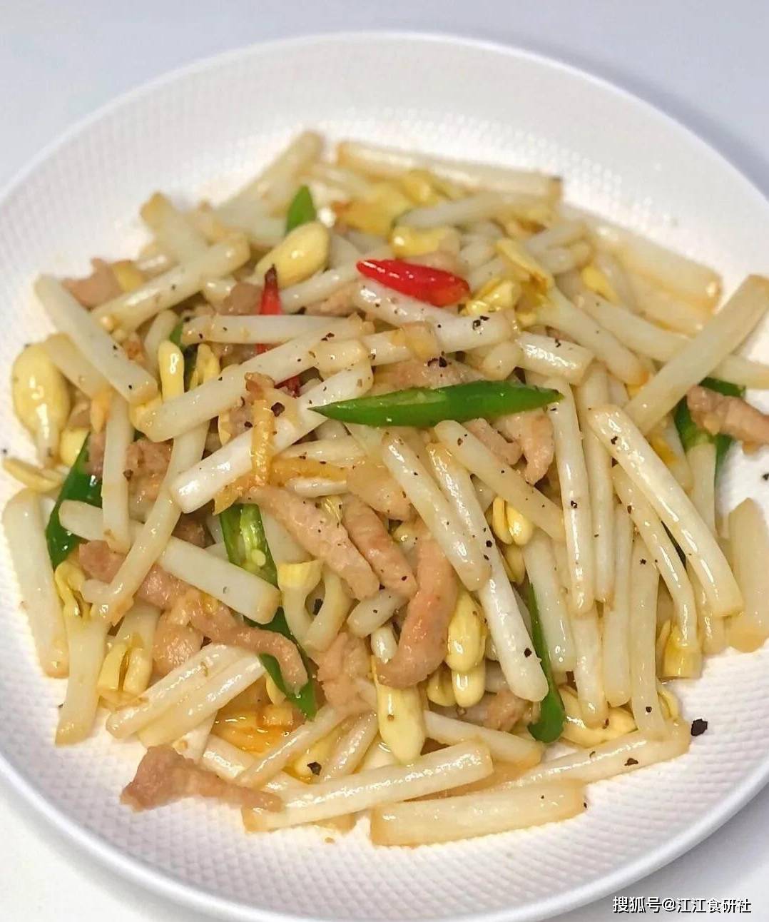 豆芽是再家常不过的碱性菜了,经济实惠,富含水分和纤维,热量极低。用它与肉丝同炒,既能满足吃肉的欲望,又能摄入大量膳食纤维,促进肠道蠕动。