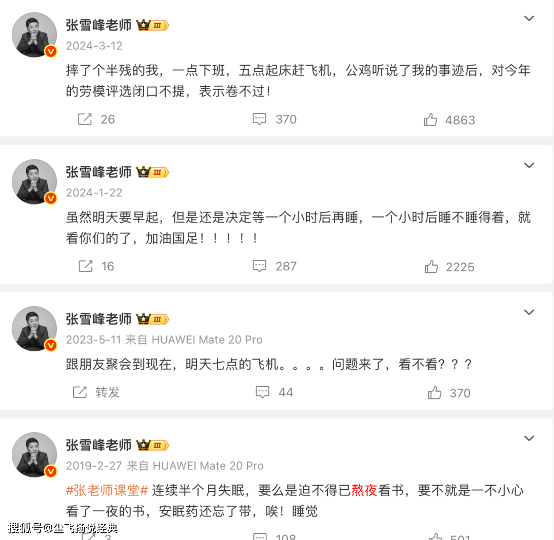 翻看张雪峰的微博,发现他太不注重睡眠了。