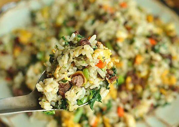 【牛肉茼蒿炒饭】