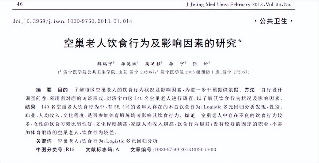陈双双.饮食结构对中国老年人健康状况的影响研究, 山东师范大学学报(自然科学版), 2016-09-15