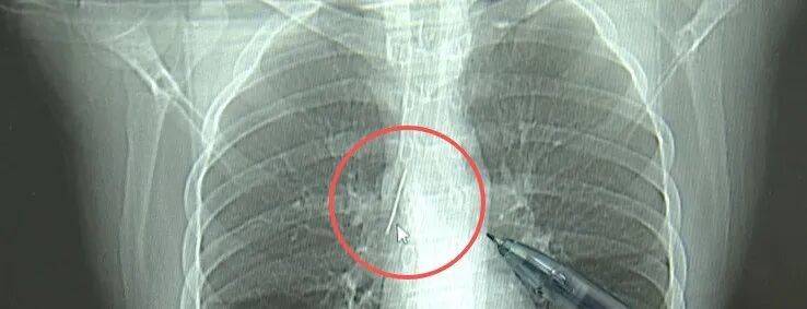 近日,安徽17岁小伙小陆参加征兵体检,胸片结果显示:胸腔内有一处金属高密度影,形态细长,像一根针。