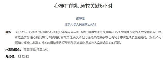 张海澄.心梗有前兆急救关键6小时[J].家庭医药,2014