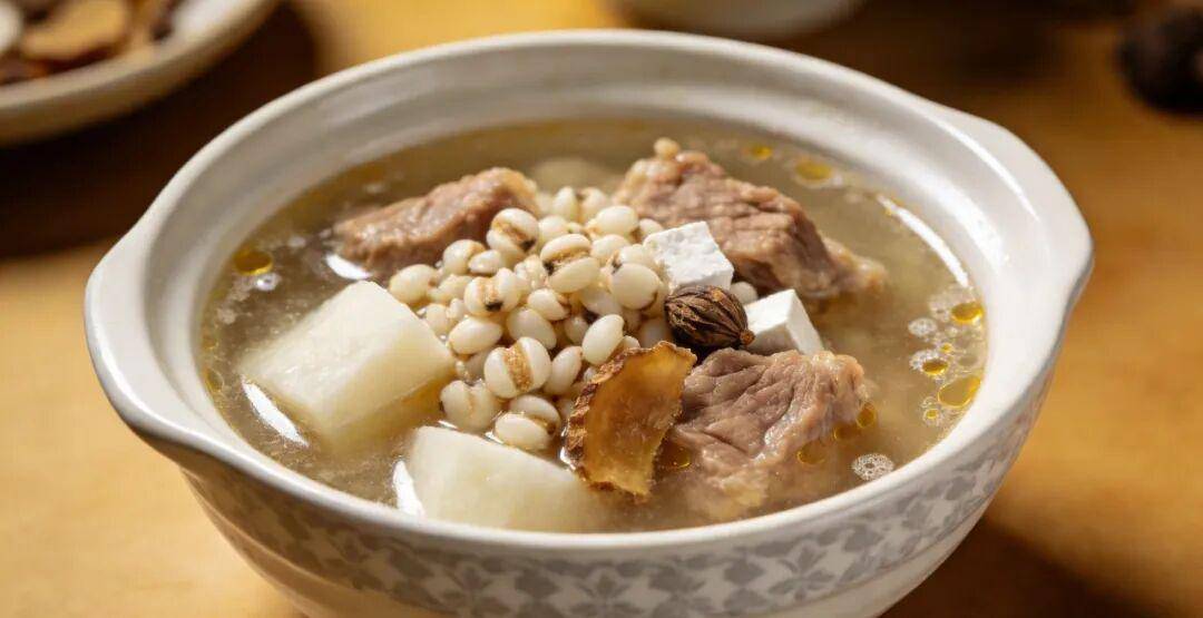 材料(2-3人量):山药、薏米、白扁豆各15克,茯苓10克,陈皮3克,砂仁2-3粒。