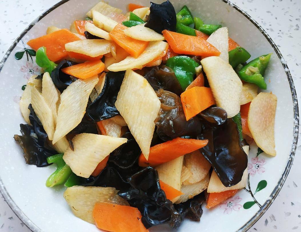 这菜可是个宝,清明时节也要多给家里人吃。其是天然的健脾高手,可以帮助脾胃提升运化水湿的功能,从而帮助身体排湿排毒。同时其还富含优质碳水,纤维素,黏蛋白等,有助于改善体质,促进代谢,益气强身等。这里将其与木耳等食材放到一起炒,爽滑可口,越吃越轻松。