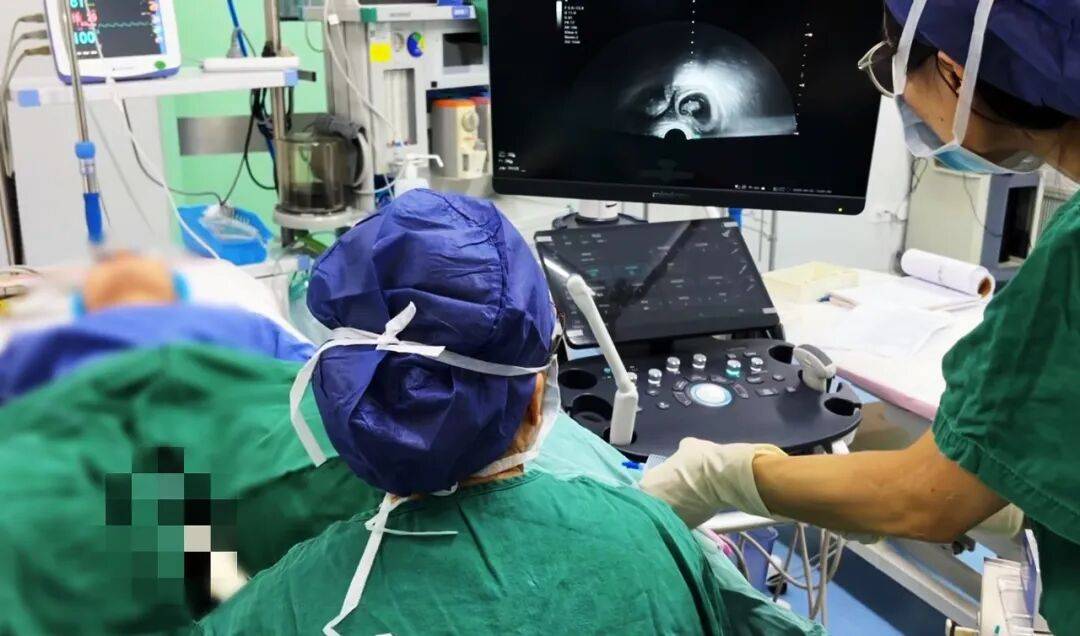 李女士孕8周时,经完善术前检查,手术团队为其实施了超声引导下经阴道穿刺减胎术。