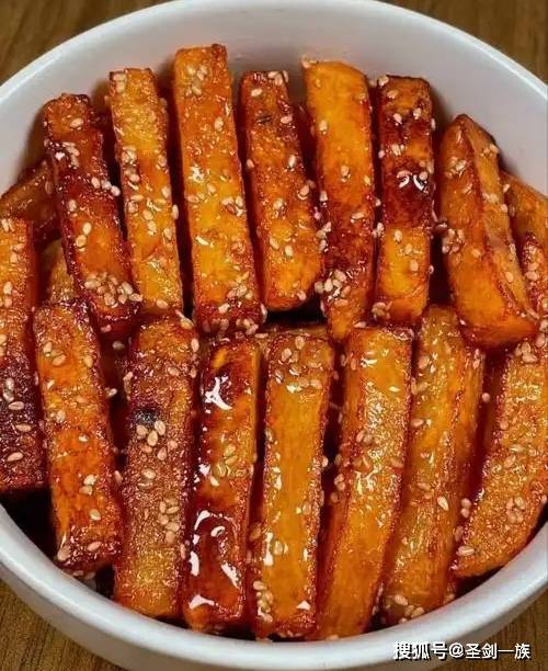 4. 锅里热油放土豆条煎至焦黄熟透捞出备用。