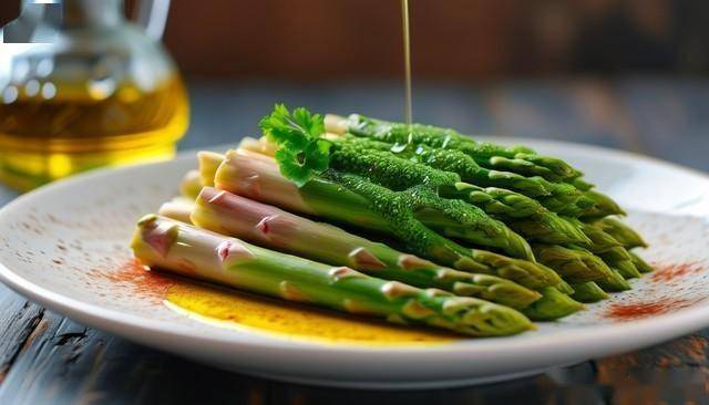 养生功效:芦笋富含氨基酸和硒元素,能增强肝脏解毒能力,尤其适合经常饮酒的人群。其含有的膳食纤维可促进肠道蠕动,帮助排出体内毒素,搭配富含不饱和脂肪酸的橄榄油,还能辅助降低胆固醇,提升代谢效率。